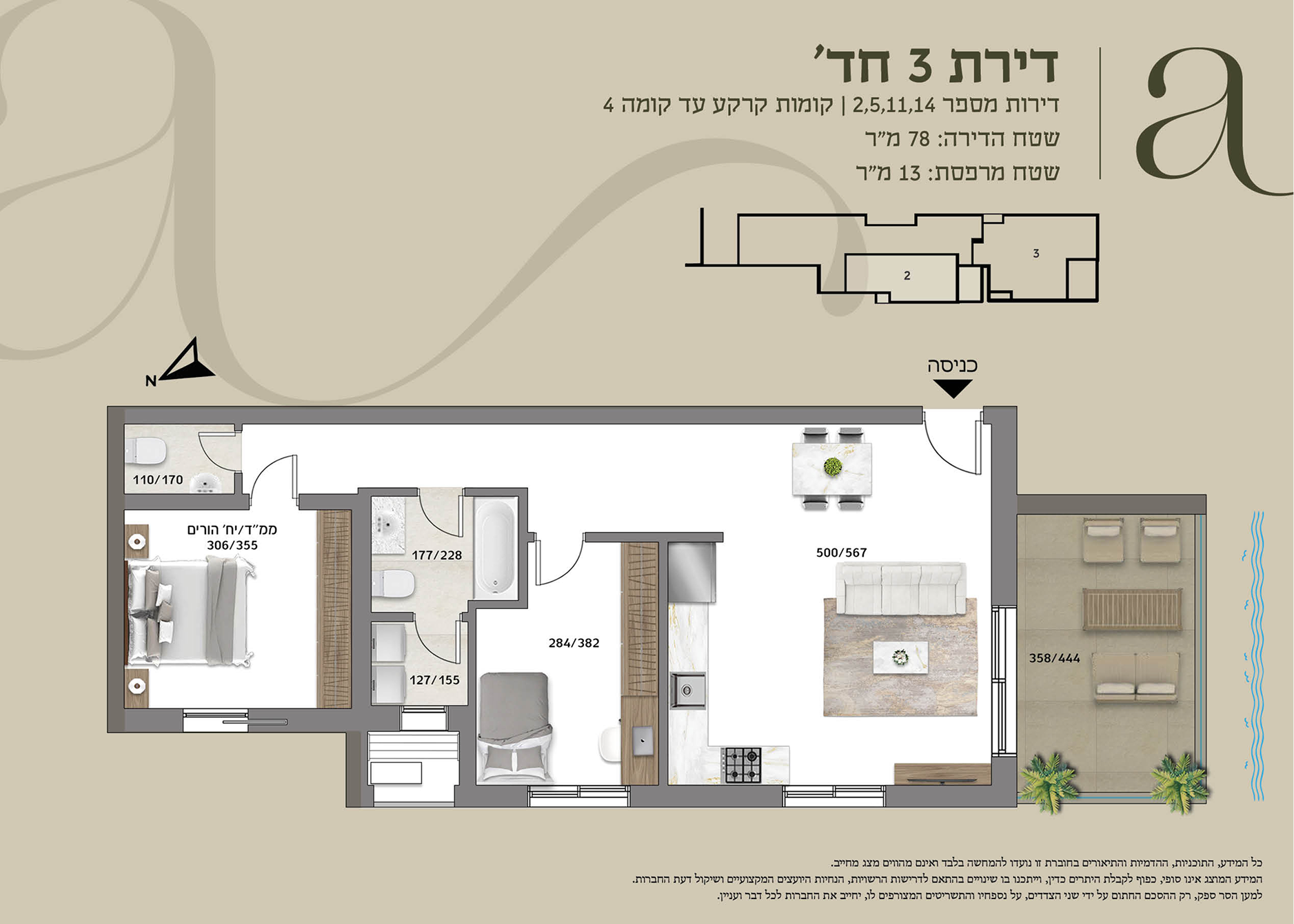 דירות מס׳ 3,4,7,9,12,13 | קומות קרקע עד קומה 4